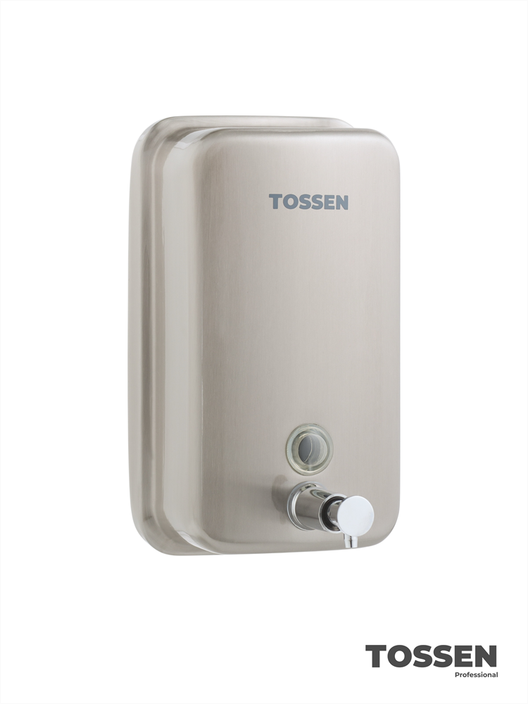 TOSSEN MN-1000 M (Steel Line) - механический дозатор жидкого мыла. Корпус диспенсера выполнен из нержавеющей стали. Оснащен надежным механизмом дозирования, смотровым окошком для контроля наличия мыла, а также замком для исключения несанкционированного доступа к содержимому дозатора и механизмом, предотвращающим его кражу.